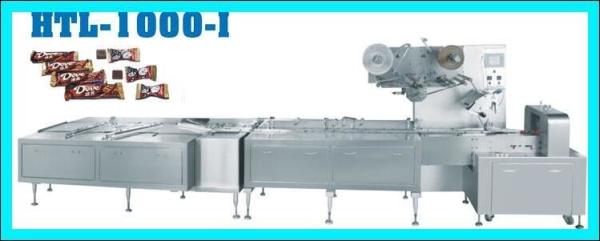 The machine is for automatic packing of round, square and rectangle chocolate products in pillow packing.